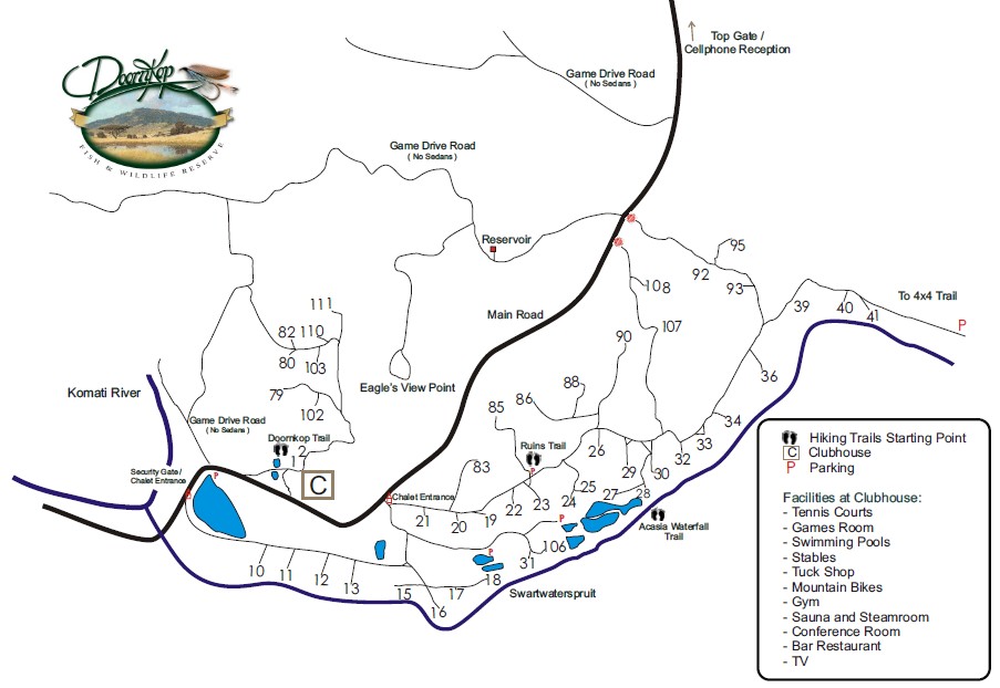 - A refundable key / breakage deposit is payable upon arrival at the resort. The deposit amount is R 1500.00 for Rental Clients, and R 350.00 for affiliated Club Members. Please note that should this fee not be paid, occupancy will not be granted. Please note that the Key and Breakage Fee is payable upon arrival to the Resort directly. This fee is not payable to the Reservation Company, as it is a Resort function. Please note that no pets are permitted. This includes all pets. Kindly take note that Doornkop Fish and Wildlife Reserve is a cashless operation. As such, cash is not accepted for any transactions. Important Notice for All Guests - To help protect our area and prevent the spread of Foot-and-Mouth Disease, all vehicles entering Doornkop will be sprayed and sanitized. Fishing is prohibited without a valid fishing permit issued by Reception. If you are found on the water without a valid fishing permit, you will be subject to a fine Group Bookings Notice: Please note that should you confirm 2 or more chalets at the same resort, for the same period, that this will be regarded as a Group Booking. Over and above the Standard Terms and Conditions and Resort Rules and Regulations, the below will also apply to all Group Bookings: 1. Before confirming and paying for your Group Booking (2 or more chalets at the same resort, for the same period), it is your responsibility to first contact the relevant Reservations Company to obtain approval from the relevant resort for the Group Booking. Should the resort decline the request for the Group Booking, the reservation will be canceled with immediate effect. Should the resort grant approval for the Group Booking, the relevant Reservations Group will assist with the payment and confirmation of the reservations, and all additional Group Booking Terms and Conditions will be explained. 2. Group Booking gatherings are not permitted in one chalet. No more than the prescribed number of guests per chalet will be permitted in the chalet. 3. Communal / Boma areas / facilities are available at most resorts. Please contact the resort directly after confirming the booking with the relevant Reservations Company, to book the areas for Group Bookings. Please do note that this will be at an additional cost and managed by the relevant resort. 4. No parties / loud music / disruptive / abusive behavior will be tolerated. Non-compliance will lead to immediate eviction at Managements and / or Security’s sole discretion. This decision is final, and the Group will be requested to leave the resort immediately. Should the Group be evicted from the resort, or occupation not permitted, neither the Reservations Company, the Resort, nor the Managing Agent will be liable for any form of compensation / refund. 5. Additional Group Booking forms must be signed by the main member upon arrival at the resort. Should the main member fail to sign the said indemnities, access will be denied, with no compensation / refund given. 6. The Key and Breakage deposit is payable per chalet confirmed, and not per Group.